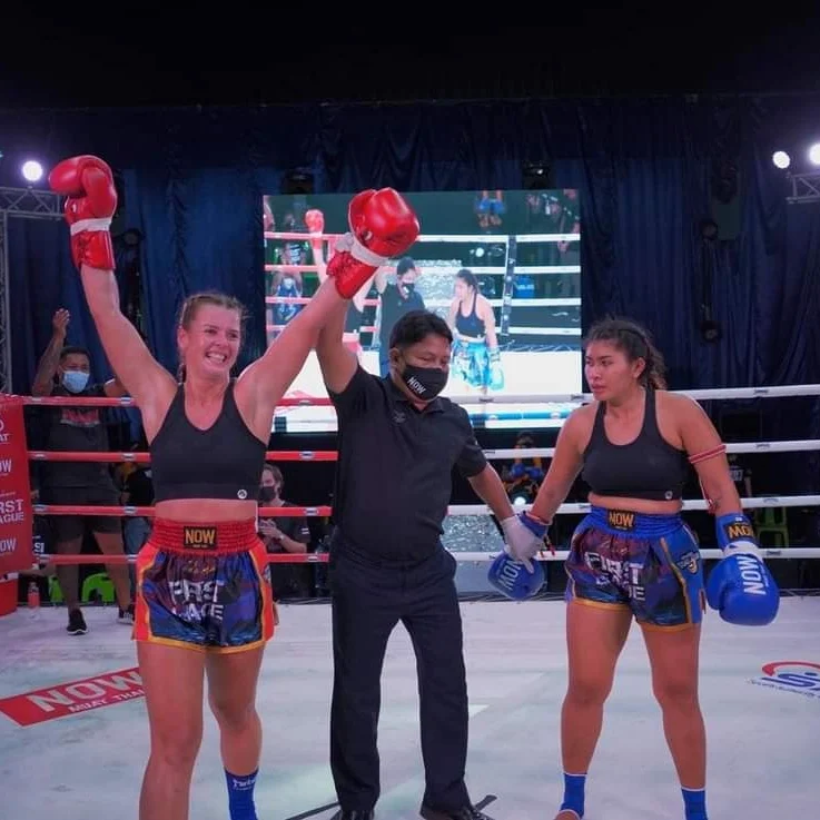 Hoe werkt het eigenlijk, hoe daag je jezelf uit en hoe ver kan je dan gaan? Dus ik bedacht, ik wil in de ring stappen. En dat deed, 26 februari 2022 had ik mijn eerste Muay Thai fight. Het was geweldig en vreselijk tegelijk!